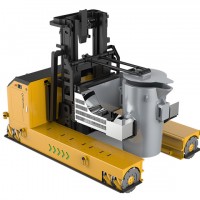 個(gè)性化定制的一款適用于澆鑄車間對(duì)高溫高危的鐵水包進(jìn)行 自動(dòng)接取、傾倒等流程化作業(yè)的設(shè)備。它是在麥克納姆輪智 能前移叉車的基礎(chǔ)上安裝了特殊的作業(yè)屬具,具備斜行、側(cè) 移、全方位無(wú)死角任意方向可移動(dòng)的特性,搭載激光導(dǎo)航, 根據(jù)規(guī)劃好的路徑自動(dòng)導(dǎo)引運(yùn)行。代替?zhèn)鹘y(tǒng)的行車吊送或人 工叉車運(yùn)送的作業(yè)模式,解放人力,安全作業(yè)。