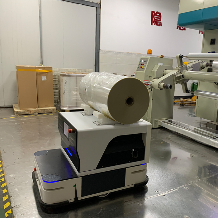 自動精準對接是利用雙深度相機對應料卷的兩端,通過藍芯科技自研的視覺系統,完成印刷料卷和印刷機頂料錐頭的精準對接,實現自動上下料卷,可大大降低勞動強度并節省大量勞動力。