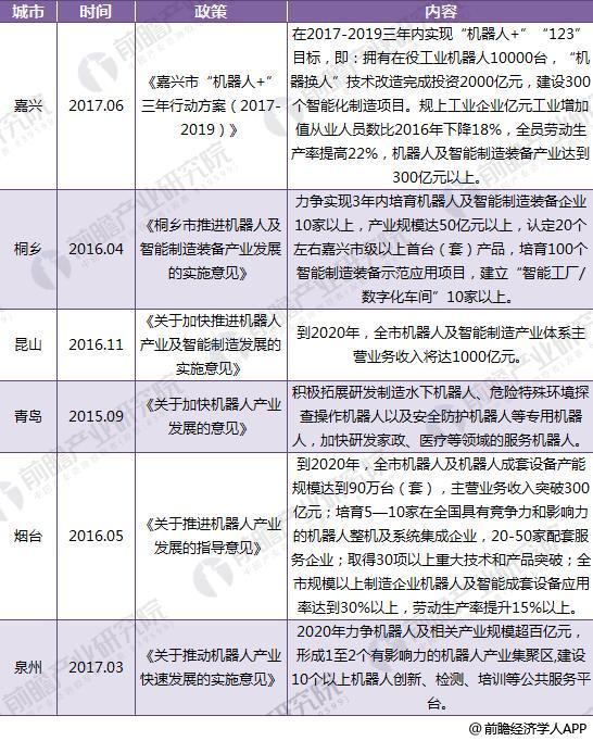 截至2018年,有14個地級市出臺機器人產業發展和加大科研投入建立智能型機器人研發機構的相關政策和獎勵機制,包括廣州、佛山、東莞、嘉興、泉州、長沙等。