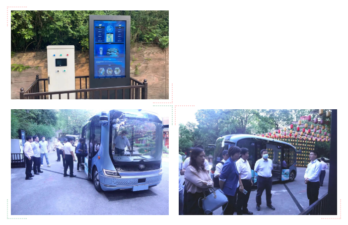 會后,雙方來到璧山秀湖公園,體驗了公司與重慶文旅集團(tuán)、宇通客車股份有限公司聯(lián)合打造的重慶首輛無線充電無人駕駛觀光車。