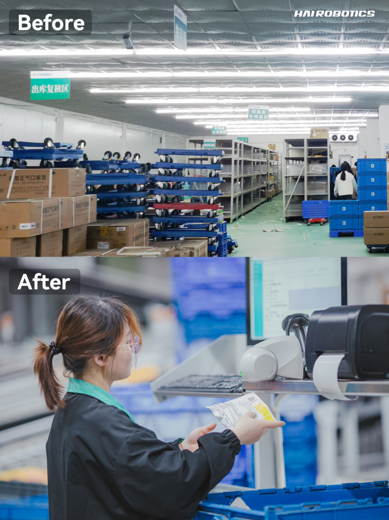 此外,傳統的人工倉庫里,貨架不能太高,否則人手難以拿到,但這就造成了庫容量低的問題。在中智的舊人工倉里,超過5萬件貨品就會產生爆倉的現象。得知海柔創新開創了箱式倉儲機器人的品類并處于行業龍頭地位,且在鞋服行業有多個成功的落地項目,中智決定攜手海柔創新ACR進行倉儲自動化升級,在提升存儲密度和揀選準確率、提高人效、減輕勞動強度等方面進行優化。
