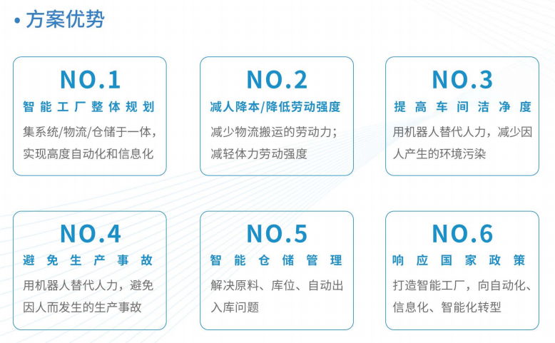 建設(shè)成效:為客戶打造智能工廠/數(shù)字工廠樣板,推動(dòng)傳統(tǒng)制造業(yè)轉(zhuǎn)型升級(jí);智能物流有效減少生產(chǎn)崗位搬運(yùn)人員配置,拉動(dòng)生產(chǎn)節(jié)拍效率,為企業(yè)減員降本、提效增產(chǎn)。