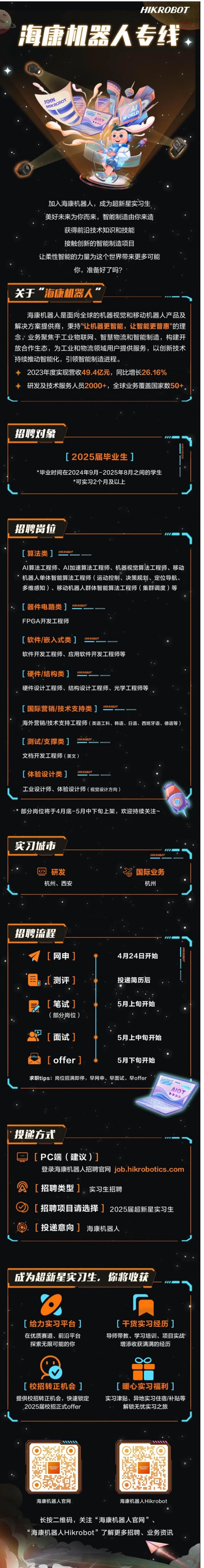 海康機器人2025屆超新星實習(xí)生火熱招聘中,點擊原文即刻投遞,和我們一起探索柔性智能的更多可能!