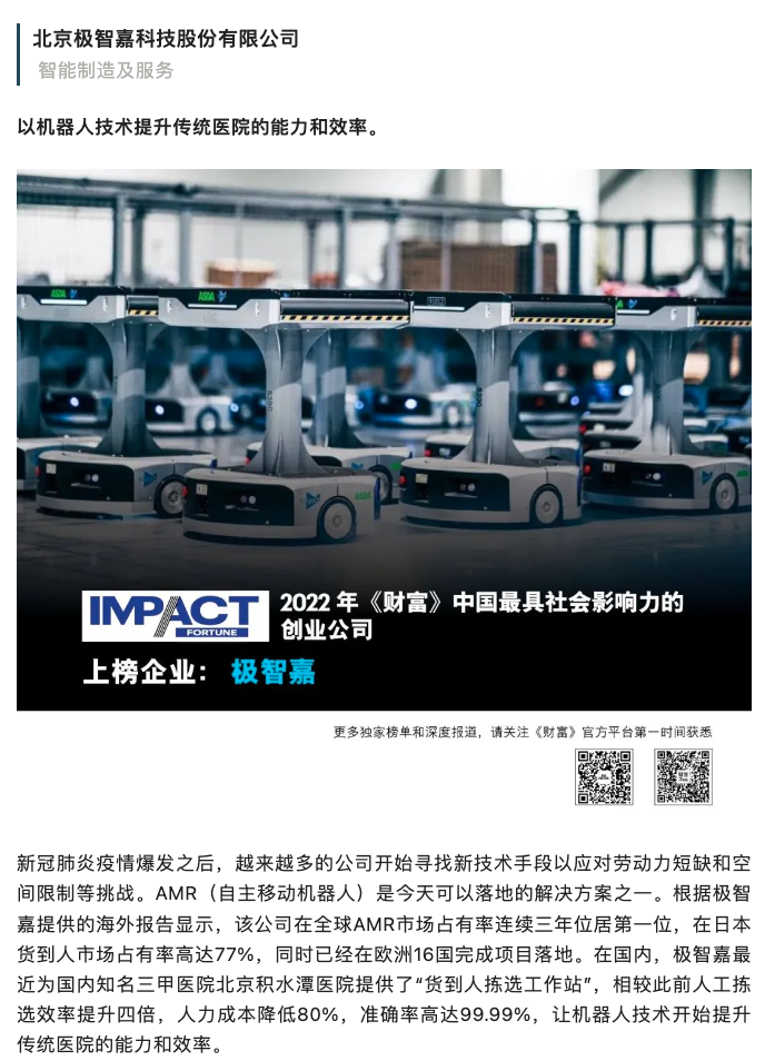 ▲ 極智嘉作為唯一AMR企業(yè)上榜(圖片來(lái)自:財(cái)富中文網(wǎng))