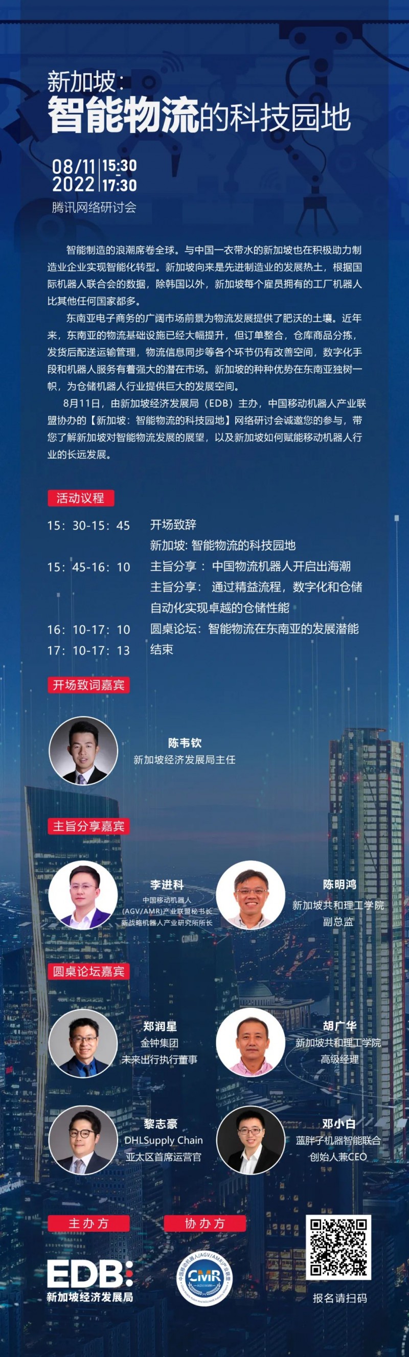 由新加坡經(jīng)濟(jì)發(fā)展局 (簡稱經(jīng)發(fā)局EDB) 主辦,中國移動機(jī)器人產(chǎn)業(yè)聯(lián)盟協(xié)辦的“新加坡:智能物流的科技園地”網(wǎng)絡(luò)研討會將于8月11日舉行。