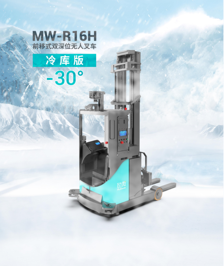 為解決低溫物流自動化場景,勱微機器人結合行業(yè)痛點屬性和客戶需求,8月24日在2022LET廣州物流上,重磅推出適用于冷庫的無人叉車解決方案,并發(fā)布第一款冷庫應用新品-冷庫版前移式無人叉車MW-R16H,可滿足零下30°低溫環(huán)境搬運需求。