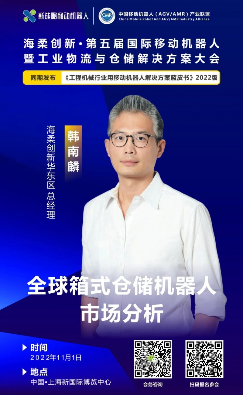 作為箱式倉儲機器人代表企業,海柔創新一直致力于用先進機器人技術去推動倉儲物流的變革。11月1日,由海柔創新獨家冠名的“第五屆國際移動機器人(AGV/AMR)暨智能物流集成商大會”將在上海舉行,屆時,海柔創新華東區總經理韓南麟將帶來“全球箱式倉儲機器人市場分析”主題演講,敬請期待!