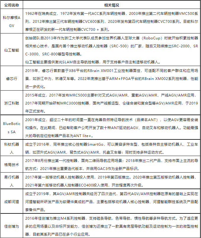 圖:中國市場主要AGV/AMR控制器廠商(排名不分先后)