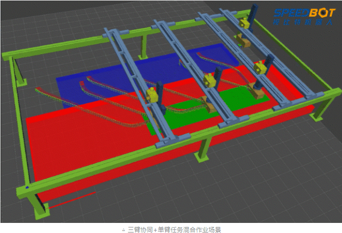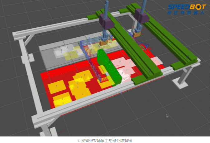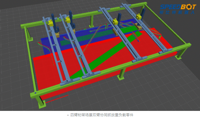 2)多臂共軸無碰運動規(guī)劃,實現(xiàn)多臂桁架機器人在共享工作空間內(nèi)高速無碰、靈敏作業(yè),無需人為干涉。