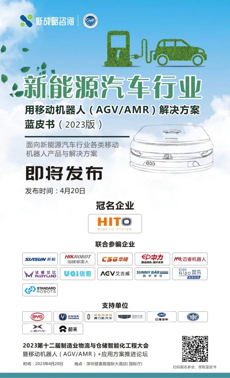 為更好地解析新能源汽車行業(yè)AGV/AMR應(yīng)用現(xiàn)狀,4月20日,在由新戰(zhàn)略移動機(jī)器人以及新戰(zhàn)略咨詢聯(lián)合主辦的“2023第十二屆制造業(yè)物流與倉儲智能化工程大會“上,”新能源汽車行業(yè)用移動機(jī)器人(AGV/AMR)解決方案藍(lán)皮書(2023版)“將正式發(fā)布!現(xiàn)場參會人員可免費(fèi)獲得藍(lán)皮書紙質(zhì)版一份!