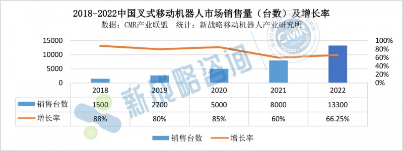 圖表:2018-2022年中國叉式移動機器人市場銷售量(臺數(shù))及增長率