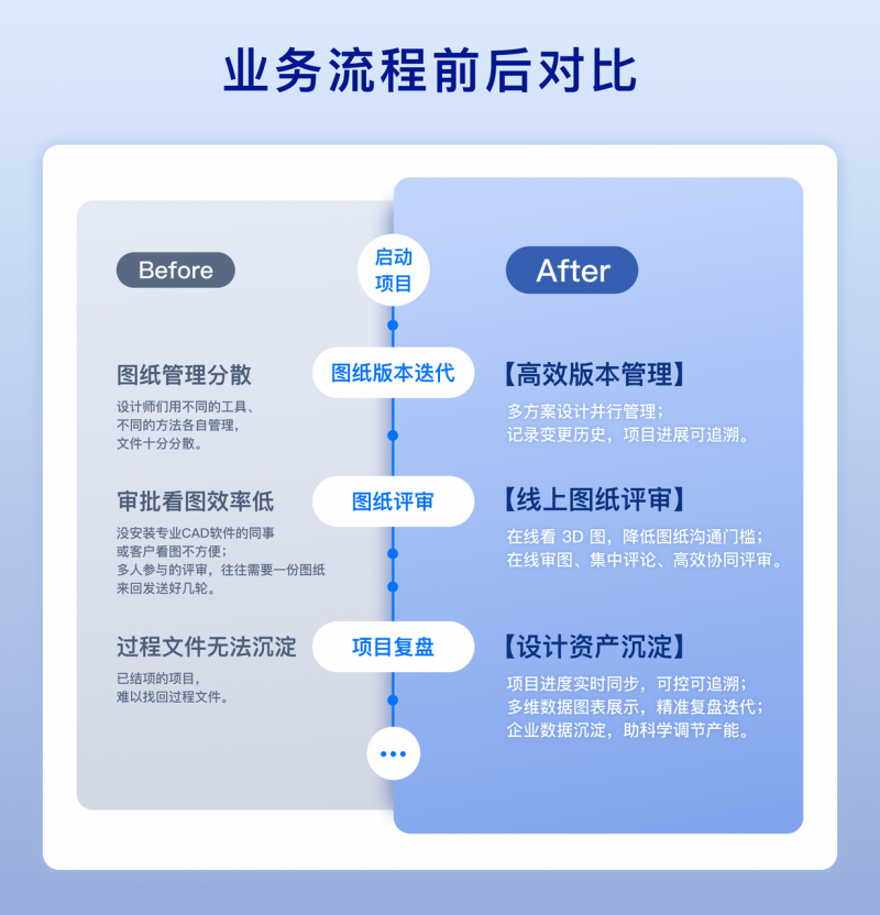 過去我們的圖紙評審會有兩種形式:1)面對面評審,效率不高且評審信息留不下來;2)發文件評審,但隨著發過來的圖紙越來越多,容易搞不清楚是哪一版,而且時間長了也很難找到。
