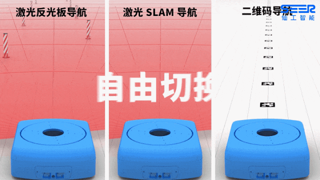 AMB 底盤(pán)激光配置更新,所有系列激光均可支持反光板導(dǎo)航,同樣支持與激光 SLAM、二維碼等導(dǎo)航方式的融合,多重定位運(yùn)行更加精準(zhǔn),重復(fù)定位精度最高可達(dá) ±2mm,實(shí)現(xiàn)機(jī)器人與設(shè)備無(wú)縫對(duì)接,高效搬運(yùn)物料。