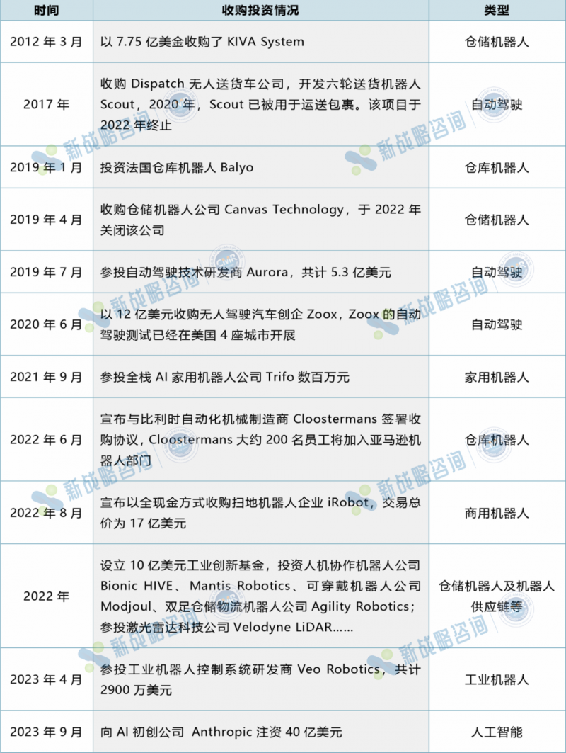 亞馬遜在機器人領域投資收購情況