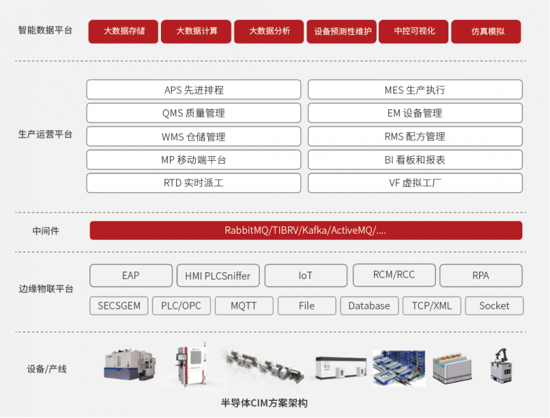 自主可控CIM系統(tǒng)方案,融合了在半導體晶圓和封測領域多年的專家經(jīng)驗,采用了最新一代的信息系統(tǒng)技術和平臺,可滿足全自動化和半自動化場景需求的半導體數(shù)字化工廠解決方案。