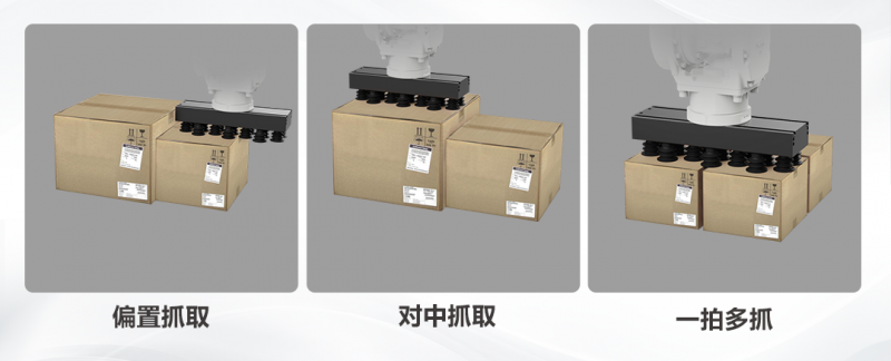 RP機(jī)器人視覺(jué)引導(dǎo)平臺(tái)可以提供多種抓取順序規(guī)則,通過(guò)拖拽式流程搭建和簡(jiǎn)單的參數(shù)配置,實(shí)現(xiàn)偏置抓取、對(duì)中抓取、一拍多抓、一抓多箱、智能端拾器抓取IO分配等多種抓取方式的應(yīng)用,滿足不同場(chǎng)景下對(duì)于抓取效率和生產(chǎn)柔性的個(gè)性化需求。