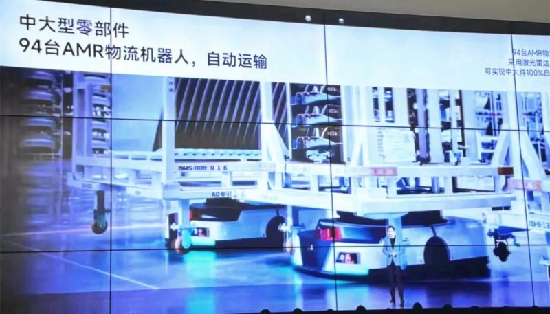 在車身車間和壓鑄車間,國自A10、A15、2T重載搬運、P4-X四款AMR自動完成包括超長超寬的重型物料在內的幾十種不同載具對接搬運任務,覆蓋物流排序區、線邊緩存區、線邊生產區等業務場景。國自采用多圖層多載具多車型模式的地圖進行智能路徑規劃及智能交通管理,實現多車混行;通過全局調度算法,在最短時間完成對近百臺AMR和超百項任務進行最優匹配和規劃,確保調度效率和準確度。