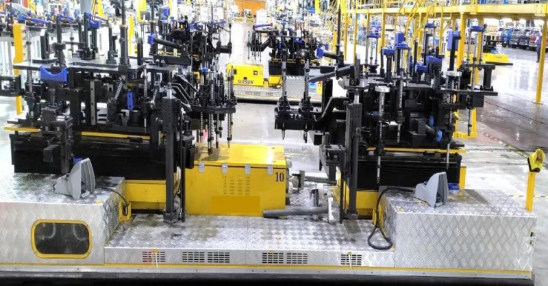 在該項(xiàng)目中,新松底盤(pán)合裝移動(dòng)機(jī)器人同時(shí)肩負(fù)兩大日系品牌汽車(chē)的底盤(pán)合裝作業(yè)任務(wù),機(jī)器人運(yùn)用動(dòng)態(tài)隨行技術(shù),實(shí)現(xiàn)與車(chē)身的自主跟隨和同步,可以根據(jù)用戶工藝需要對(duì)機(jī)器人線路靈活調(diào)整,進(jìn)一步提升生產(chǎn)柔性,滿足日系車(chē)廠嚴(yán)謹(jǐn)?shù)墓そ尘窈蛯?duì)生產(chǎn)設(shè)備的嚴(yán)格要求。