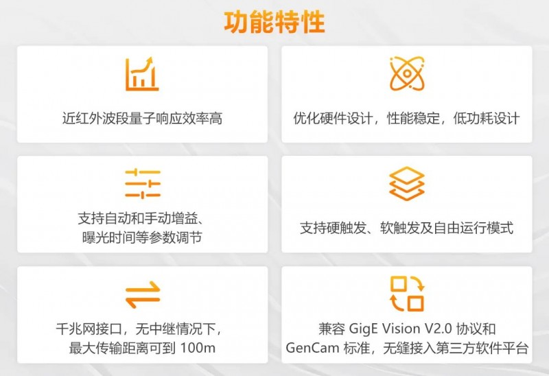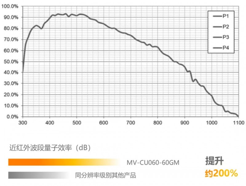 該相機近紅外波段的響應效率顯著提升,能夠在近紅外光環(huán)境下保證成像效果,在常見的近紅外應用中,如光伏、激光檢測、眼科醫(yī)療等應用中,能夠確保細節(jié)的獲取與圖像亮度效果的呈現(xiàn)。