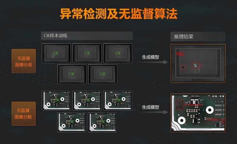 面對缺陷檢測初期樣本稀缺,導(dǎo)致模型學(xué)習(xí)無法穩(wěn)定收斂的挑戰(zhàn),VM4.4創(chuàng)新推出AI異常檢測類算法工具。通過集成無監(jiān)督圖像分類與無監(jiān)督圖像分割算法,用戶僅需提供少量正常樣本,就能快速準(zhǔn)確地識別異常缺陷,大大加速模型收斂過程,顯著縮短項目落地時間。