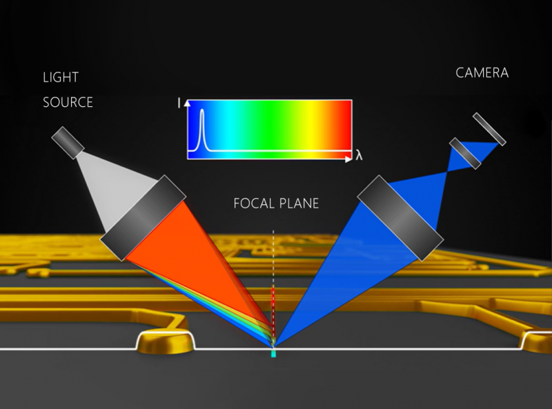 2. 在3D測量成像領域,光譜共焦應用中需要精確測量被測物表面的平整度和精度,需要500幀以上的相機采集高精度圖片進行圖像存儲和處理。
