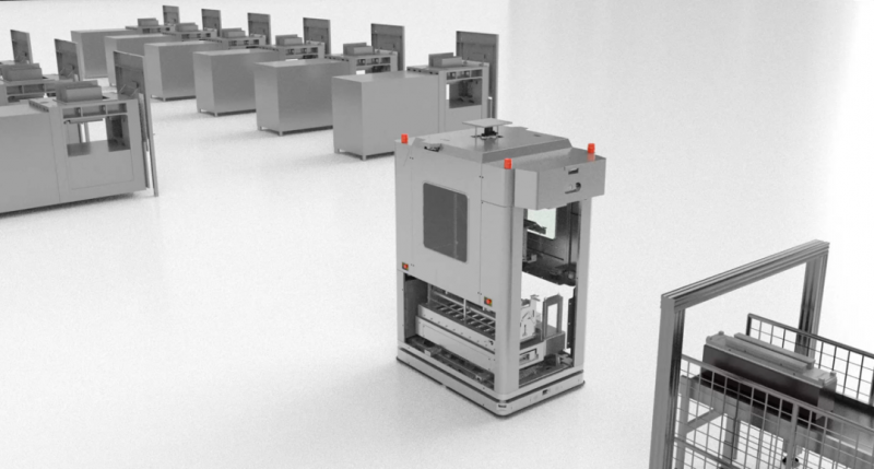 一體式方案,根據(jù)不同料盒形態(tài)的轉(zhuǎn)運(yùn)需求,應(yīng)用適配的移動(dòng)機(jī)器人完成相應(yīng)工序間的物料轉(zhuǎn)運(yùn)。由于物料是直接存放在一體式機(jī)器人的倉位內(nèi),當(dāng)出現(xiàn)前后工序間物料上下料節(jié)拍不匹配的場景時(shí),一體式機(jī)器人可將物料存放在緩存站內(nèi),用于平衡工序間的生產(chǎn)節(jié)拍。