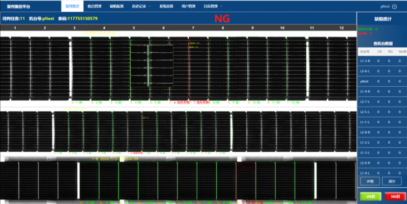 為了更好地追溯電池組件的全流程質(zhì)量,海康機(jī)器人定制開發(fā)了光伏組件決策看板,從單站檢測到各個(gè)機(jī)臺(tái)的集控復(fù)判,整個(gè)工廠的數(shù)據(jù)匯總、運(yùn)行狀態(tài)一目了然。