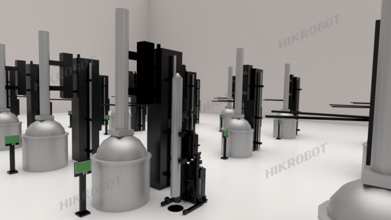 為應(yīng)對這些挑戰(zhàn),海康機(jī)器人設(shè)計(jì)了一套全自動(dòng)化解決方案,涵蓋硅料自動(dòng)添加、料品自動(dòng)轉(zhuǎn)運(yùn)、晶棒無人化提取與冷卻處理、截?cái)鄼C(jī)對接、開方、磨削等后續(xù)工序的物料自動(dòng)轉(zhuǎn)運(yùn),乃至廢料處理的自動(dòng)化流程。方案緊密匹配各生產(chǎn)環(huán)節(jié),有效提升工作效率并解決行業(yè)難題。