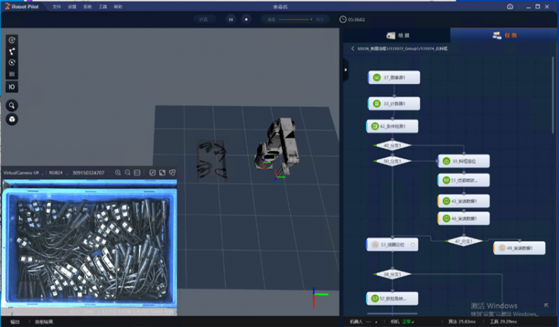 使用相機拍攝型材中部,RP輸出一組型材抓取點引導(dǎo)機械臂進行抓取 |