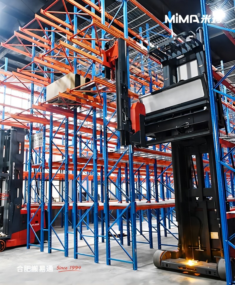 國內(nèi)首創(chuàng)!合肥搬易通MiMA雙深位人上型三向叉車,助力精加工行業(yè)實現(xiàn)“VNA高密度存儲”模式