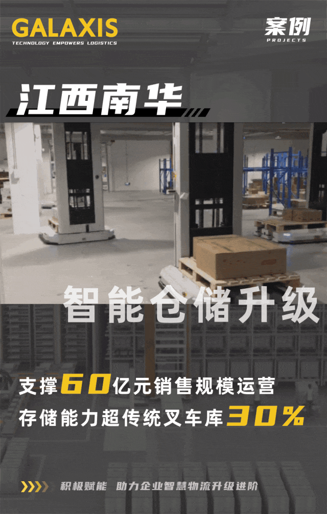 基于以上痛點,江西南華再度攜手凱樂士科技,在其新庫房區域內采納凱樂士科技樓層倉創新解決方案,引入PTR側叉式移動機器人,結合倉儲管理系統與機器人調度系統,實現庫區智能化、數字化、無人化的物流系統建設。