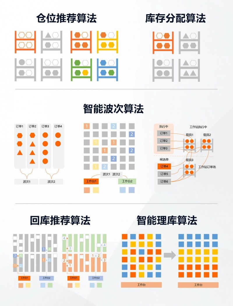 電商平臺(tái)、鞋服、生鮮冷鏈、醫(yī)藥等相關(guān)流通行業(yè)客戶共同有著對(duì)響應(yīng)效率、準(zhǔn)確率和柔性的極致追求。基于此,海康機(jī)器人打造iWMS-Logistics,在滿足庫(kù)存精細(xì)管理的基礎(chǔ)上,聚焦出庫(kù)效率提升。針對(duì)TOB、TOC、退貨等多業(yè)態(tài)訂單,iWMS-Logistics采用開(kāi)班出庫(kù)、波次分播出庫(kù),支持邊揀邊播、先揀后播的分播出庫(kù)模式。組波環(huán)節(jié)考慮出庫(kù)訂單優(yōu)先級(jí)、截單時(shí)間、單多品、SKU相似度等因素。同時(shí),支持按門店、按路線、按目的地等多種屬性分播,且支持集貨的暫存管理等。基于AI和深度學(xué)習(xí),iWMS-Logistics融合五大智能算法。入庫(kù)環(huán)節(jié)倉(cāng)位推薦算法,讓物料入庫(kù)合理分布;智能波次算法搭配庫(kù)存分配算法,考慮優(yōu)先級(jí)、庫(kù)存分布、關(guān)聯(lián)性等因素,實(shí)現(xiàn)庫(kù)存最優(yōu)分配和出庫(kù)站點(diǎn)均衡指派,助力日上免稅行實(shí)現(xiàn)日最大出庫(kù)15W行;智能理庫(kù)算法,在非作業(yè)時(shí)間段,由AMR智能理庫(kù),使每個(gè)器具調(diào)整到最佳倉(cāng)位,提高出庫(kù)效率。