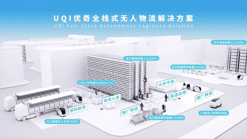 一個(gè)典型的生產(chǎn)物流場景貫穿了原材料卸貨、入庫、倉儲(chǔ)、分揀、出庫并配送至生產(chǎn)車間,加工成成品后,成品入庫、倉儲(chǔ)、分揀及出貨等多個(gè)場景,涵蓋了物料的存儲(chǔ)、分揀、搬運(yùn)和配送四大功能。如何實(shí)現(xiàn)全流程無人化,尤其是各流程之間的自動(dòng)化無縫銜接,一直是行業(yè)痛點(diǎn)。UQI優(yōu)奇此次推出“硬件+軟件+服務(wù)+運(yùn)營”的全棧式無人物流解決方案,具備AI賦能、真無人、高柔性三大特點(diǎn),通過多模態(tài)大模型、視覺算法和語音技術(shù)等多種AI技術(shù)賦能,可一站式柔性調(diào)度多種設(shè)備及機(jī)器人的協(xié)同作業(yè),快速實(shí)現(xiàn)物流場景布局調(diào)整、擴(kuò)建、升級(jí)等需求,真正完成無人物流的閉環(huán)。