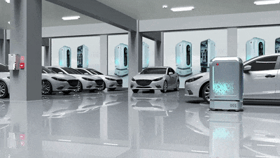 車主可通過手機端充電APP一鍵下單,為汽車充電,系統(tǒng)接到充電任務1秒級響應并指派充電機器人前往泊車位。