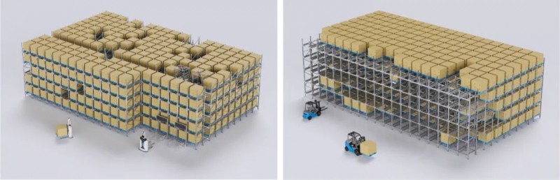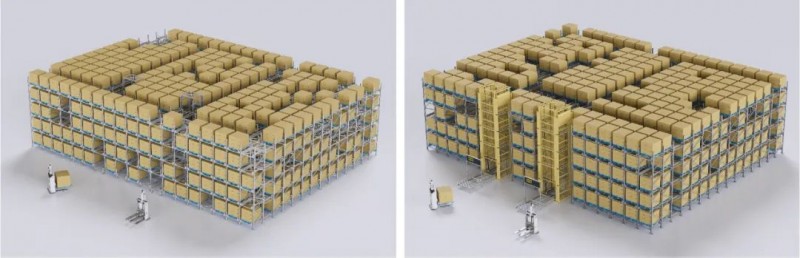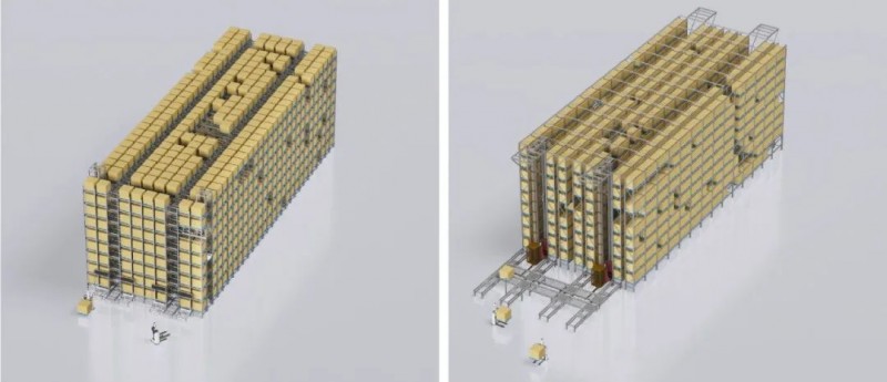 柔性方面:六向穿梭車庫可根據場地,靈活規劃儲位;可根據SKU,靈活規劃深位;可根據效率,靈活規劃緩存位。而堆垛機庫的剛性結構,在儲位及深位規劃上具有很大弊端。