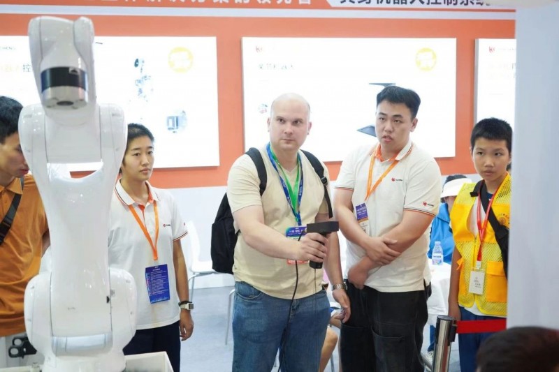 “原來機器人對人的指令響應可以這么靈敏!”,展會現場,驚嘆聲與討論聲此起彼伏,華成工控“遙操作體驗區”,成為人氣展位。觀眾通過操作臺上的遙操設備,可直接控制展區內的機器人完成一系列動作:從精準抓取桌上的零件,到同步快速示教,整個過程絲滑流暢,機器人動作精準度贏得在場觀眾陣陣贊嘆。