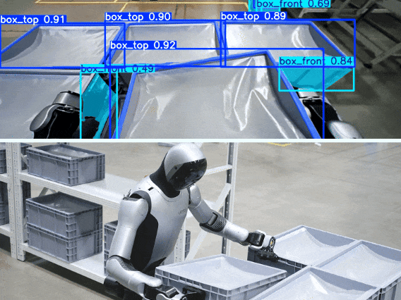 第一,自研視覺編碼器基座,構(gòu)建精準(zhǔn)環(huán)境感知。優(yōu)必選以ViT作為視覺編碼器原型,結(jié)合Co-DETR檢測頭,依托Object 365等開源數(shù)據(jù)在通用視覺任務(wù)上進(jìn)行預(yù)訓(xùn)練,并通過多階段模態(tài)對齊機(jī)制實現(xiàn)了視覺-語言模態(tài)的高效融合。最終,在優(yōu)必選機(jī)器人數(shù)據(jù)集上進(jìn)行微調(diào),顯著提升機(jī)器人在工業(yè)場景中對物體、障礙和操作上下文的識別能力,為復(fù)雜環(huán)境下穩(wěn)定可靠的多模態(tài)環(huán)境感知奠定了堅實基礎(chǔ)。