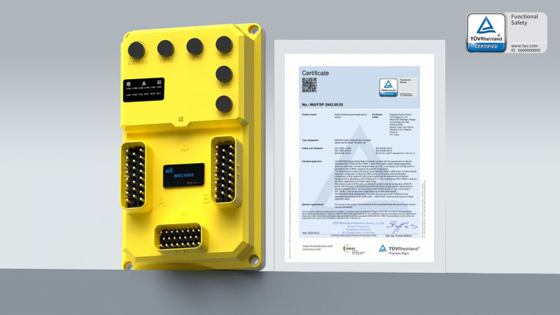 近日,浙江科聰控制技術有限公司(以下簡稱"科聰")的安全移動機器人控制器MSC5000榮獲全球權威認證機構德國萊茵TÜV集團(TÜV Rheinland)頒發的功能安全認證證書。這款控制器是全球首款通過SIL3、PLe 認證的移動機器人安全控制器,其安全等級與性能均處于世界領先水平,標志著科聰在機器人安全控制領域的創新突破。