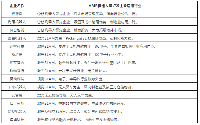 中國市場,目前超過60%的工業應用移動機器人本體企業都擁有AMR產品,且企業數量還在不斷增多中,這其中有專注于自然導航產品的企業,也有傳統的AGV、倉儲機器人廠商及物流集成商等。