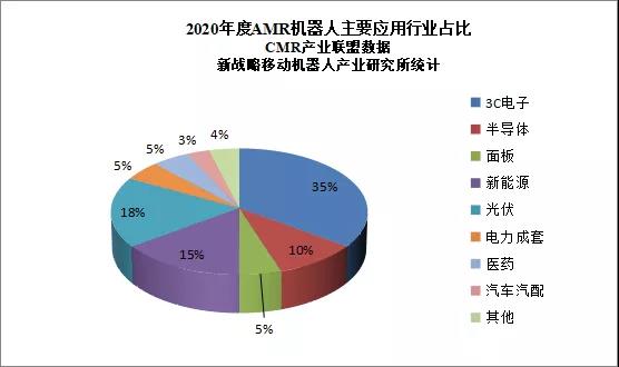 2020年AMR機器人應用主要集中在3C電子、半導體、面板、新能源及光伏、電力成套及醫藥行業等制造領域,其中3C電子行業應用規模最大,占比40%。值得注意的是,2020年AMR機器人在傳統的汽車市場也有滲透,但占比不大。主要原因在于新興制造業對生產線的柔性化要求程度更高,因此AMR在這些領域更受青睞。不過伴隨著AMR技術的進一步成熟以及制造業產業升級的加速,未來AMR機器人將逐漸向更廣闊的市場延伸。