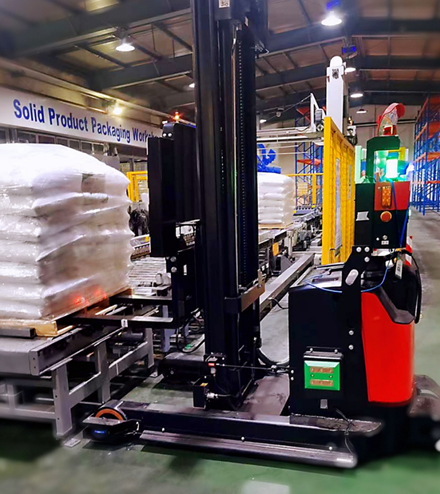 該項目客戶為韓國資本在中國的化工外企,杭叉智能通過整合機(jī)械臂、輸送線、穿梭車、打包機(jī)以及WMS等軟硬件,結(jié)合自身新款堆垛前移車進(jìn)行項目規(guī)劃,充分發(fā)揮車輛小巧靈活,對于空間需求進(jìn)一步縮小的優(yōu)勢,配以鋰電快充大容量的特點以及5G通訊技術(shù)的巨大優(yōu)勢,因地制宜,在較短的時間內(nèi)完成實施并將項目投入使用,完全替代了原先人工車的作業(yè)模式,達(dá)到了機(jī)器換人的目的,實現(xiàn)整體物流智能化。