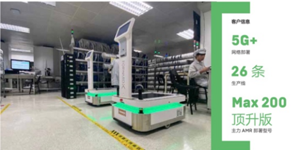全球領(lǐng)先的某大型通信設(shè)備公司無線小基站智能工廠項目,迦智科技近百臺自然導(dǎo)航AMR,在5G技術(shù)低延時、高帶寬、高速率的傳輸特性加持下,實現(xiàn)了與用戶現(xiàn)場的MES、WMS以及第三方設(shè)備間的互聯(lián)互通,信息上傳下達(dá),交互協(xié)同作業(yè)。