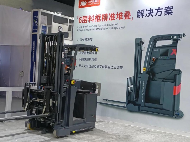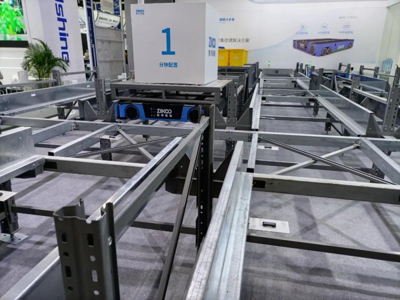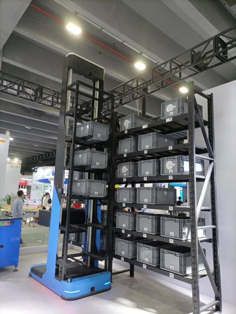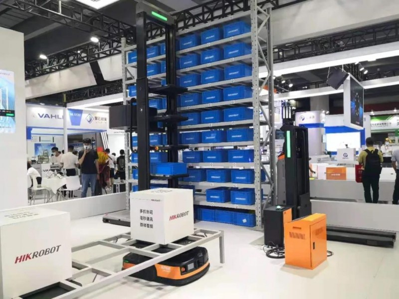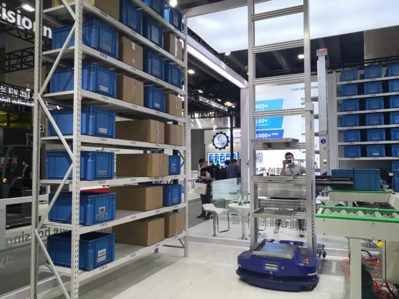 海康此次展出了全向叉取式機器人、貨箱到人機器人、多機器人協同系統,以及助力物流提效的單件分離系統、六面讀碼系統、IDP系列智能移動終端等系列產品。