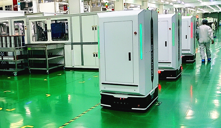 國自光伏晶硅電池片工廠AGV智能搬運整體解決方案,能實現大規模智能物流機器人物料轉運,替代原有人工作業模式,大幅提升產能并持續保證生產線穩定運行。