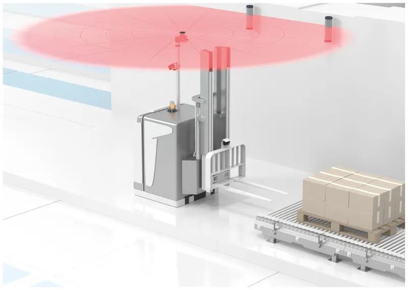在日常的物流倉儲應用中,越來越多的自動導引車輛 (AGV) 正投入使用,而 AGV 運行需要兩個必不可少的功能:可靠的導航和安全防護。導航可以采用不同的方法,例如車道引導或使用 LiDAR 傳感器進行導航。我們可以在工廠墻壁上安裝反射器,或者通過示教環境輪廓進行導航。
