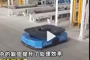 這款機(jī)器人在接到取貨指令后,可在 10 秒內(nèi)從貨架一層攀爬到 10 層高,取下 12 箱總重量超百公斤礦泉水,每臺(tái)機(jī)器人一次能搬運(yùn)一噸重的貨品。