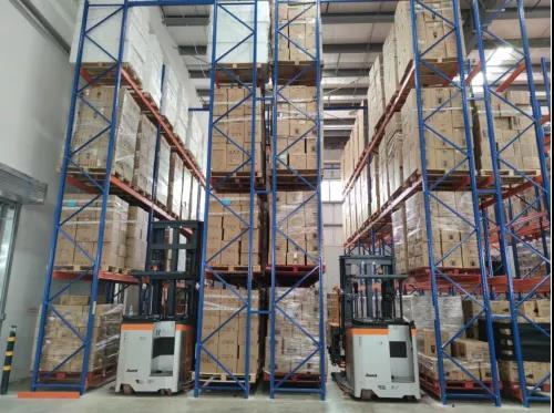 優(yōu)異的性能使得VDA116三向叉車自推出以來(lái)就受到了眾多用戶的青睞。某食品配送公司,每天有大量的物料需要進(jìn)出倉(cāng)庫(kù),之前都是采用地堆的方式存儲(chǔ)。隨著公司業(yè)務(wù)的不斷擴(kuò)大,原本的存儲(chǔ)方式已經(jīng)不能滿足他們現(xiàn)有的業(yè)務(wù)需求。只有將物料上貨架,在不改變現(xiàn)有倉(cāng)儲(chǔ)面積的情況下,可以增加庫(kù)位。可是如果采用傳統(tǒng)貨架堆垛方式,在庫(kù)位的增加上并沒(méi)有很大的優(yōu)勢(shì),未來(lái)業(yè)務(wù)再擴(kuò)張后,還將面臨儲(chǔ)位不足的問(wèn)題。客戶多方比較后決定采用卓一的三向堆垛車來(lái)改造現(xiàn)在的倉(cāng)庫(kù)。