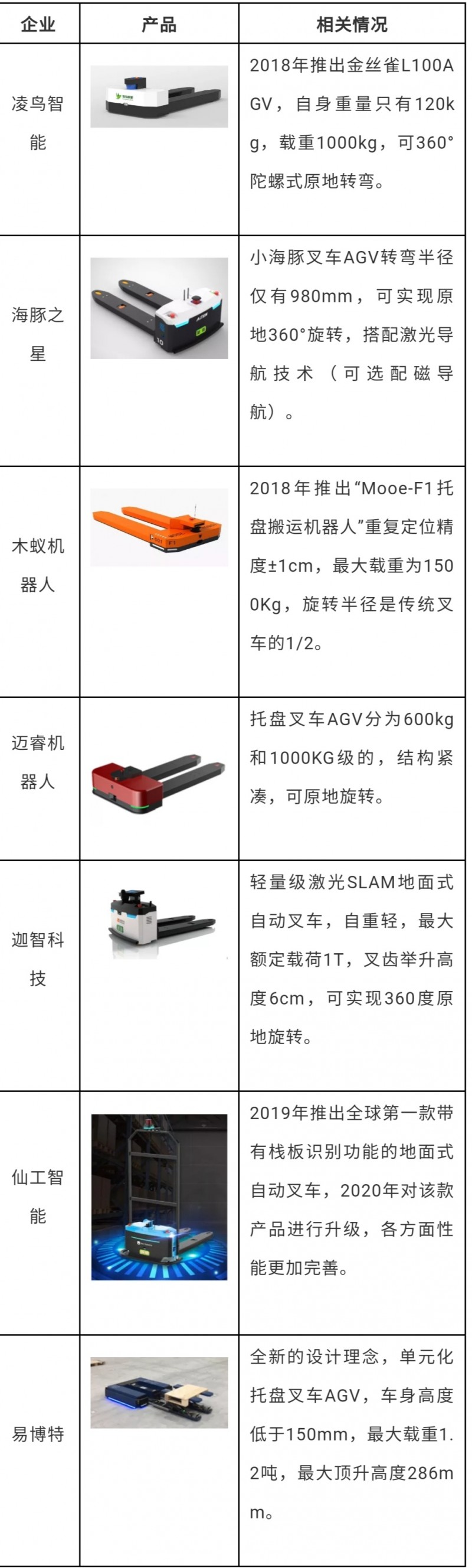 表:國(guó)內(nèi)部分緊湊型托盤(pán)叉車AGV廠商