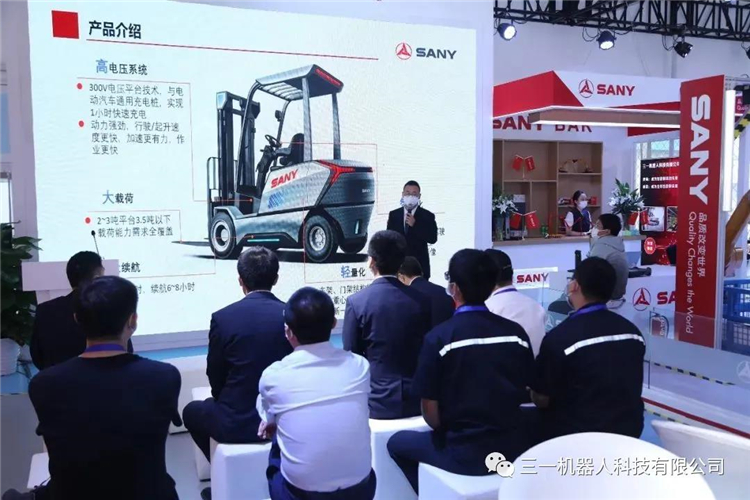 叉車式AGV、背負式AGV、新能源鋰電叉車……在三一展位,這些清潔又聰明的機器人令人贊嘆。
