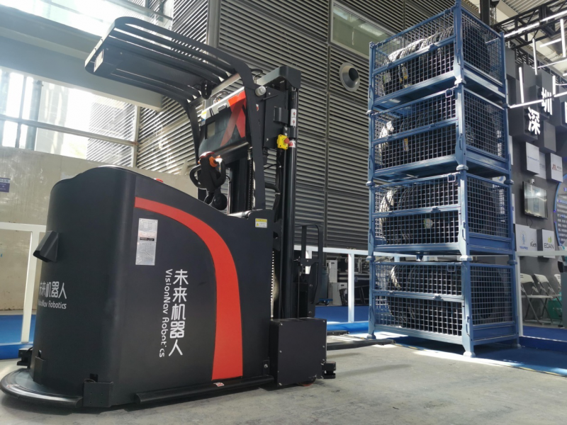 目前,未來機(jī)器人的視覺導(dǎo)航無人叉車已在汽車制造、輪胎、食品、石油化工、電商物流、第三方物流、制藥等領(lǐng)域?qū)崿F(xiàn)物流無人化,且在細(xì)分應(yīng)用領(lǐng)域的場(chǎng)景難題攻克方面獲得持續(xù)創(chuàng)新。石油化工行業(yè)的倉(cāng)儲(chǔ)環(huán)境對(duì)無人叉車AGV的堆垛靈活性提出了新的要求。既要實(shí)現(xiàn)從產(chǎn)線到出庫(kù)的搬運(yùn)無人化又要實(shí)現(xiàn)外月臺(tái)貨車(平板車)的位姿識(shí)別好現(xiàn)有貨物擺放狀態(tài)識(shí)別。場(chǎng)景內(nèi)引進(jìn)未來機(jī)器人的VNPA系列平衡重堆高式無人夾抱車,外置壓力傳感器,能夠雙層夾抱物料,靈活應(yīng)對(duì)堆垛要求,支持多種屬具切換,適應(yīng)不同類型的貨物搬運(yùn);利用“圖像識(shí)別技術(shù)+5G”,5G邊緣計(jì)算能夠減少車端處理壓力,降低單車本體價(jià)格,實(shí)現(xiàn)石油化工類產(chǎn)品產(chǎn)線、檢驗(yàn)倉(cāng)、成品倉(cāng)、外月臺(tái)全流程無人化搬運(yùn),峰值工作量達(dá)到1500包/天,取代3班叉車工人和7臺(tái)人工叉車,實(shí)現(xiàn)24小時(shí)穩(wěn)定連續(xù)運(yùn)行,庫(kù)容總量從4000包提升至6000包;突破了無人裝車在工業(yè)車輛應(yīng)用最大的剛需場(chǎng)景。首例室內(nèi)外全天候長(zhǎng)距離對(duì)接無人轉(zhuǎn)運(yùn):在國(guó)內(nèi)機(jī)械加工行業(yè)頭部企業(yè),實(shí)現(xiàn)全球首例室內(nèi)外全天候長(zhǎng)距離對(duì)接無人轉(zhuǎn)運(yùn)。在該園區(qū)場(chǎng)景中,室外的極端環(huán)境(例如暴雨、積雪等)對(duì)無人工業(yè)車輛的定位導(dǎo)航提出了新的挑戰(zhàn)。通過導(dǎo)入未來機(jī)器人的無人叉車系統(tǒng),室內(nèi)引入VNP10-02系列平衡重式無人叉車、VNP10系列平衡重堆高式無人叉車可穩(wěn)定實(shí)現(xiàn)自適應(yīng)取放貨裝車,室外引入VNQ40無人牽引車可實(shí)現(xiàn)室內(nèi)外或外搬運(yùn)。未來機(jī)器人采用混合導(dǎo)航、人工智能搬運(yùn)方式,解決室內(nèi)外長(zhǎng)距離運(yùn)輸?shù)碾y題,提高產(chǎn)線之間的上下料工作效率。無人叉車與無人牽引車交互接駁場(chǎng)景的落地,實(shí)現(xiàn)機(jī)械零配件原料和成品在兩個(gè)倉(cāng)庫(kù)和三個(gè)車間之間的全流程無人化轉(zhuǎn)運(yùn)。該項(xiàng)目對(duì)單體車定位、感知、控制的穩(wěn)定性要求極高。該項(xiàng)目中,兩個(gè)貨架之間最窄處僅為3m,車體運(yùn)行安全距離為3.3m以上,極限的作業(yè)寬度對(duì)視覺無人叉車的感知能力提出挑戰(zhàn);同時(shí),7m以上貨架的上下架需要無人叉車AGV具備橫梁檢測(cè)、放貨空間檢測(cè)能力、以及報(bào)警能力。通過將客戶現(xiàn)場(chǎng)的舊車改造成專門針對(duì)9米高位存儲(chǔ)的前移式無人叉車(VNR系列),能夠?qū)痈噍d具,實(shí)現(xiàn)產(chǎn)線、打包機(jī)密集存儲(chǔ)貨架區(qū)的全流程產(chǎn)品無人化搬運(yùn)。改造之后,峰值工作量達(dá)到每小時(shí)30托,實(shí)現(xiàn)3班窄通道作業(yè),節(jié)省3班,約9名叉車司機(jī)。這是全球第一例客戶存量叉車的改造升級(jí)項(xiàng)目,可以有效利用客戶資產(chǎn),減少前期AGV投入,實(shí)現(xiàn)產(chǎn)線到高位密集存儲(chǔ)貨架的無人化搬運(yùn)。汽配工廠的零部件采用倉(cāng)儲(chǔ)籠進(jìn)行裝載,對(duì)運(yùn)輸工具的載重和作業(yè)精度都有很高的要求。零部件在產(chǎn)線、檢驗(yàn)倉(cāng)、成品倉(cāng)之間分揀和轉(zhuǎn)運(yùn),完全依賴人工作業(yè),工作效率不高。此外,為了保證配件(變速箱)的產(chǎn)品質(zhì)量,按照傳統(tǒng)方法采用標(biāo)準(zhǔn)倉(cāng)儲(chǔ)籠裝載,只能放置兩層,對(duì)空間的利用率極低。同時(shí),倉(cāng)儲(chǔ)內(nèi)料框的4個(gè)內(nèi)扣型底座開口小,對(duì)無人叉車AGV的感知度、精確度、穩(wěn)定性提出了挑戰(zhàn)。未來機(jī)器人對(duì)客戶現(xiàn)場(chǎng)舊倉(cāng)進(jìn)行改造,采用混合導(dǎo)航方式,導(dǎo)入多臺(tái)平衡重堆高式無人叉車和無人牽引車(VNQ系列)進(jìn)行精準(zhǔn)堆垛,共同完成自動(dòng)出入庫(kù),實(shí)現(xiàn)了進(jìn)行6層以上倉(cāng)儲(chǔ)籠的堆疊,庫(kù)容利用率增加了3倍,7*24小時(shí)交替作業(yè),單次多托料籠裝卸靈活作業(yè)環(huán)節(jié)實(shí)現(xiàn)了“人工替代”,降低生產(chǎn)成本的同時(shí)提高了工作效率,完美承接了客戶需求的出入庫(kù)節(jié)拍,實(shí)現(xiàn)出入庫(kù)環(huán)節(jié)的全自動(dòng)、科學(xué)化管理。首個(gè)達(dá)65臺(tái)無人叉車多樓層、多機(jī)臺(tái)對(duì)接項(xiàng)目:該項(xiàng)目已在國(guó)內(nèi)3C面板行業(yè)頭部企業(yè)實(shí)現(xiàn)落地,項(xiàng)目涉及多種規(guī)格載具識(shí)及運(yùn)輸、場(chǎng)景堆單車技術(shù)及大規(guī)模集群調(diào)度技術(shù)。大庫(kù)位的倉(cāng)儲(chǔ)場(chǎng)景,AGV無人叉車需要多層聯(lián)合配合,對(duì)未來機(jī)器人庫(kù)位管理系統(tǒng)、AGV無人叉車中控系統(tǒng)的計(jì)算能力、對(duì)接的系統(tǒng)數(shù)量和兼容性要求頗高。在改造過程中,不改變現(xiàn)場(chǎng)環(huán)境的情況下,借助視覺導(dǎo)航平衡重式無人叉車及中控系統(tǒng),一次性全局精準(zhǔn)定位,引入65